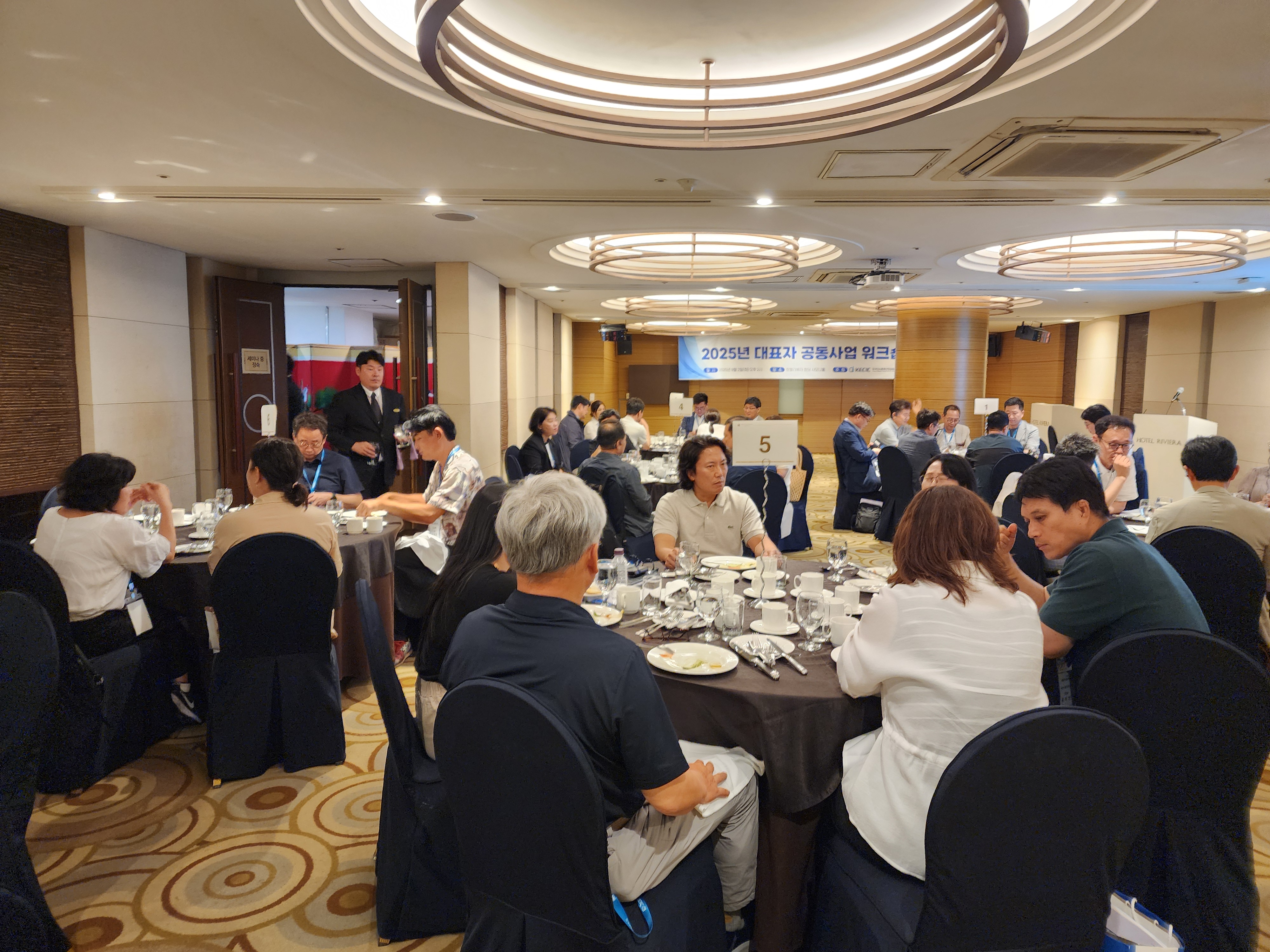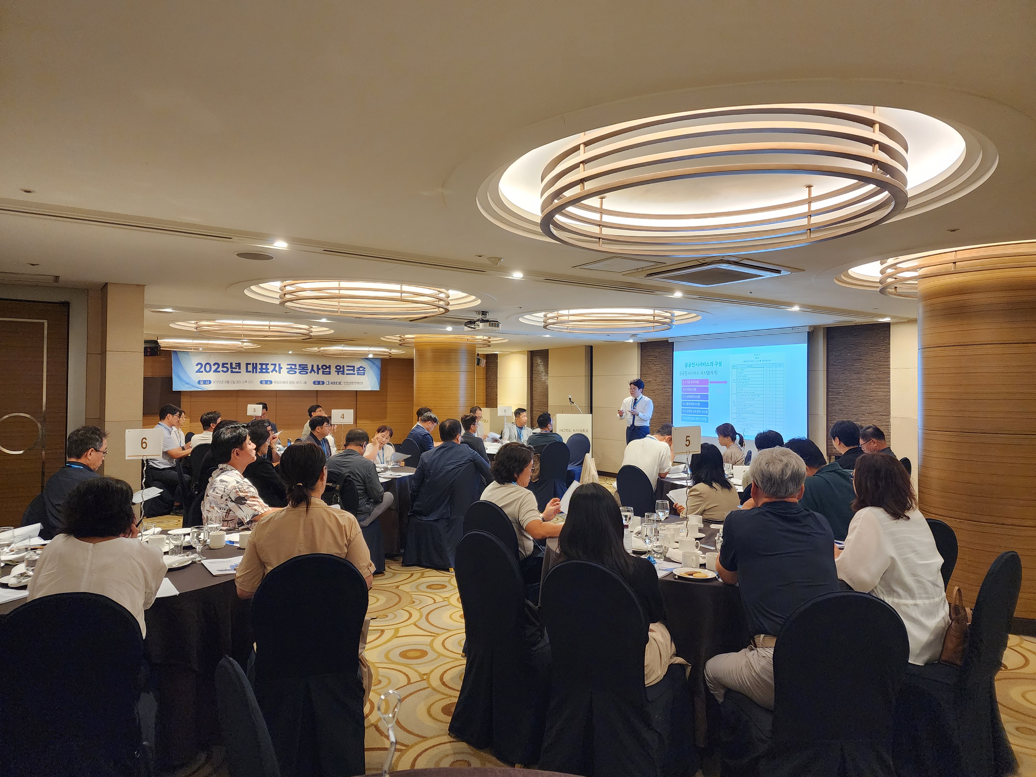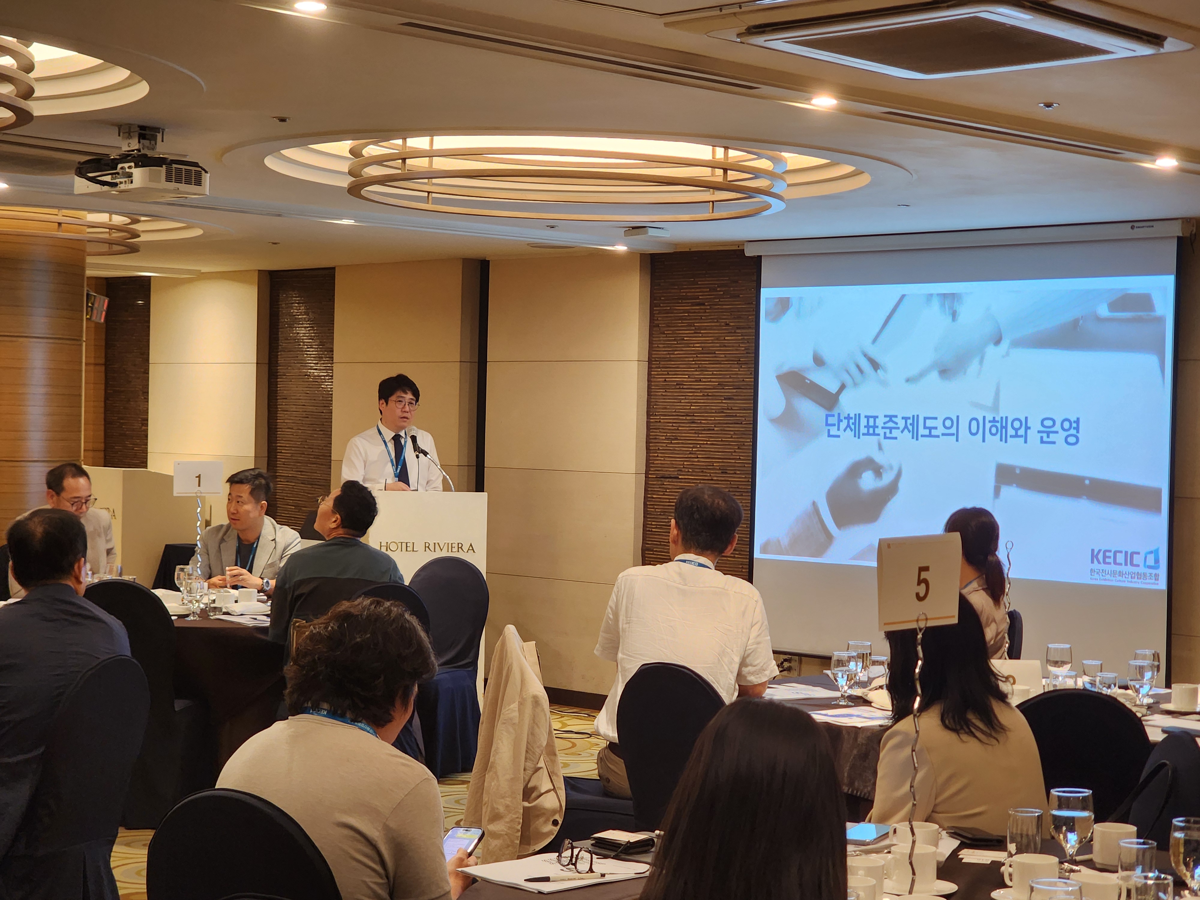 한국전시문화산업협동조합은 지난 9월 2일(화) 호텔리베라 청담에서 ‘대표자 공동사업 워크숍’을 성공적으로 개최하였습니다. 이번 워크숍은 공동사업 현황을 공유하고 단체표준 인증 제도에 대한 이해를 높이는 한편, 회원사 간 교류와 네트워킹을 강화하기 위해 마련된 자리로, 많은 공동사업 대표자 및 임원 분들게서 적극적으로 참여해주셨습니다.