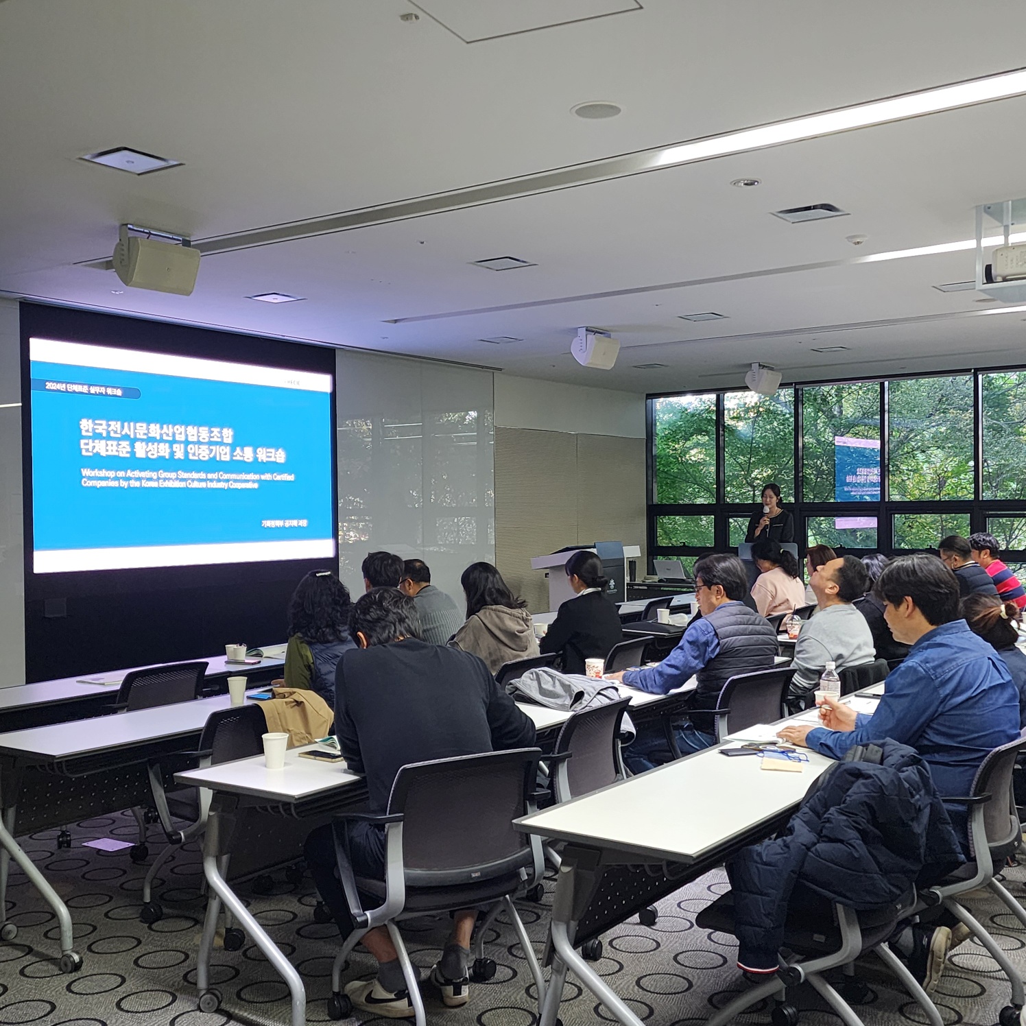 한국전시문화산업협동조합에서는 지난 11/7(목)~11/8(금)에 양평 현대블룸비스타 호텔에서 단체표준인증 워크숍을 성공적으로 개최하였습니다. 이번 워크숍은 조합원사의 품질 향상과 단체표준 인증에 대한 이해도를 높이기 위해 기획된 자리로, 많은 단체표준 인증 회원사들이 적극적으로 참여해 주셨습니다.