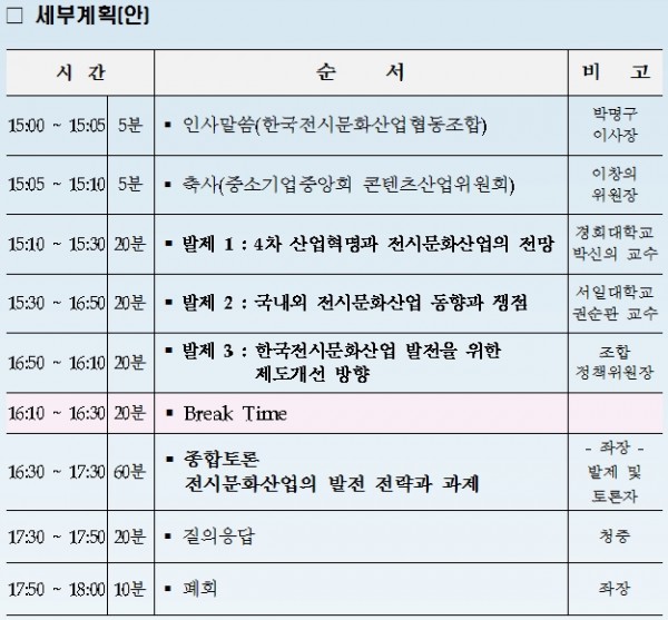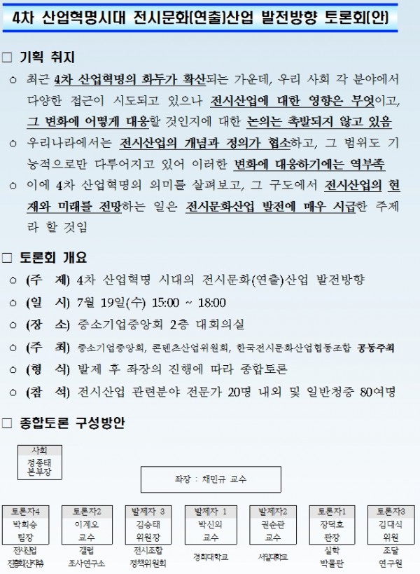 [토론회] 전시문화산업 발전을 위한 토론회 개최 안내(종료)