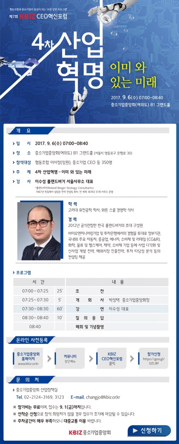 [중소기업중앙회] 제7회 KBIZ CEO혁신포럼 개최 안내 (종료)