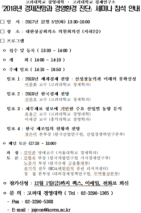 [중앙회] 「2018년 경제전망과 경영환경 진단」 세미나 참석 안내 (종료)