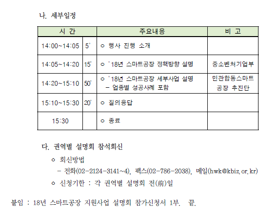 [중앙회] 2018년도 스마트공장 지원사업 권역별 설명회 참석 안내(종료)