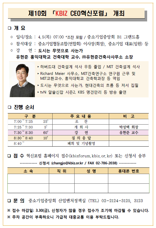 [중앙회] 제10회 KBIZ CEO 혁신포럼 개최 (종료)