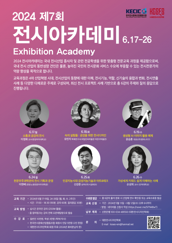 2024년 상반기 전시아카데미 교육이 6월 17(월)부터 2주간 실시됩니다.